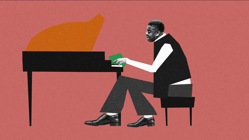 These two styleframes represent my concept's evolution. For the Blue one I aim to merge graphic design with a collage approach to animate a band. On the right, I employ traditional graphic techniques, utilizing abstract shapes to symbolize musical instruments.